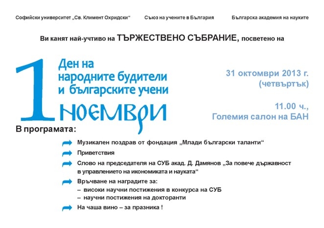 Имаме удоволствието да ви поканим на 29.1.2014 г. (сряда) от 16.00 часа в Кирило-Методиевския научен център (ул. „Московска“ 13), за да отбележим заедно