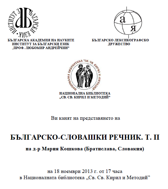 Представяне на книгата „БЪЛГАРСКО-СЛОВАШКИ РЕЧНИК. Т. ІІ”