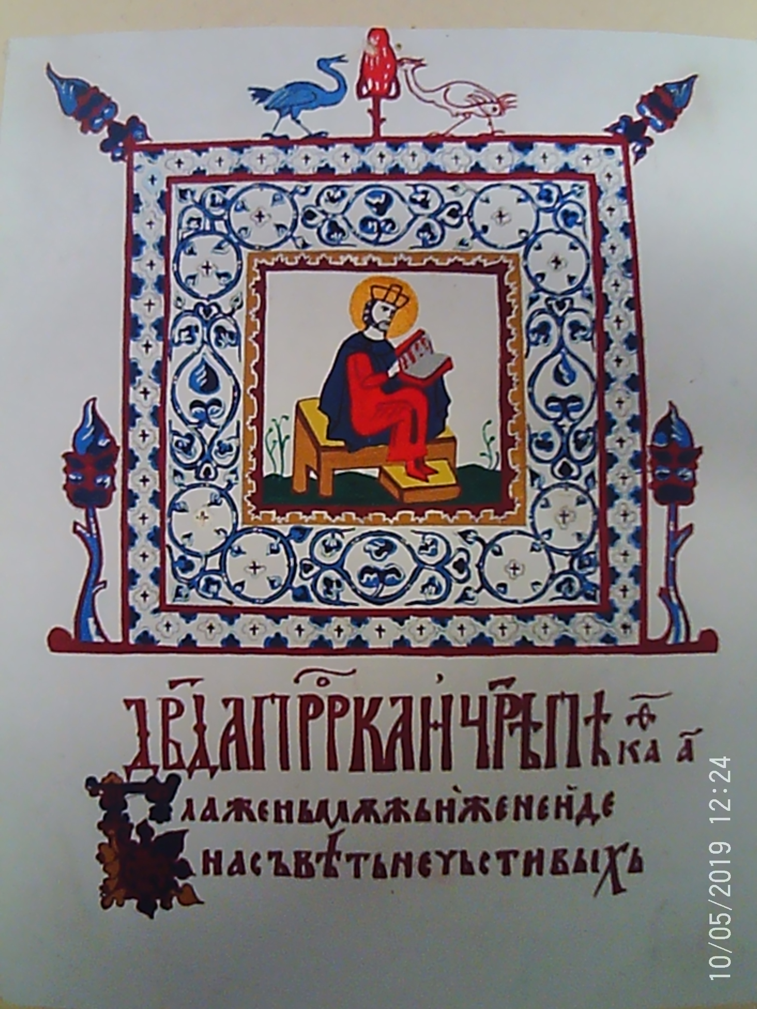 Курсистите от Енорийския център се представят с реплики на миниатюри от украсата на Лондонското евангелие и Томичовия псалтир. Копията са създадени след предварително подробно запознаване на децата с най-добрите образци на средновековните книги.